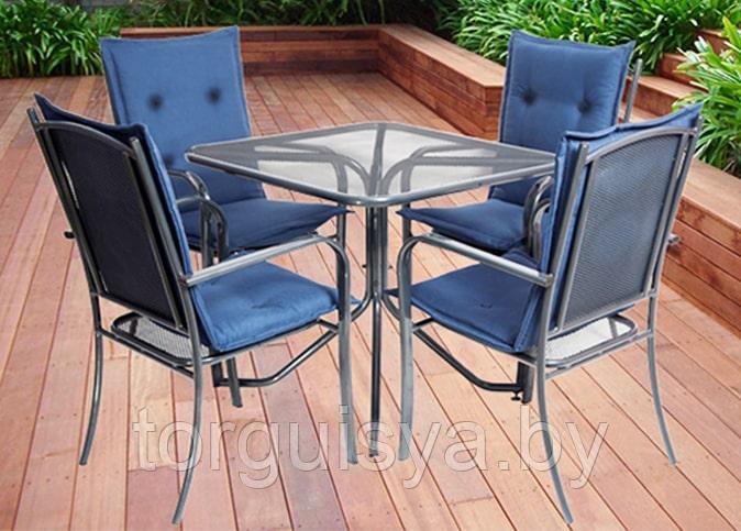 Комплект (набор) дачной мебели Ницца с935 - это прекрасный вариант как для дачи, так и для террасы. Данный комплект мебели имеет мягкие элементы толщиной 5 см, две синтепоновые подушки и мягкие подлокотники для более комфортного времяпрепровождения в солнечный день. Для большего удобства спинки кресел имеют регулируемый угол наклона (3 позиции). Кроме стандартных кресел, в данном комплекте террасной мебели идут еще и две банкетки (пуфика).